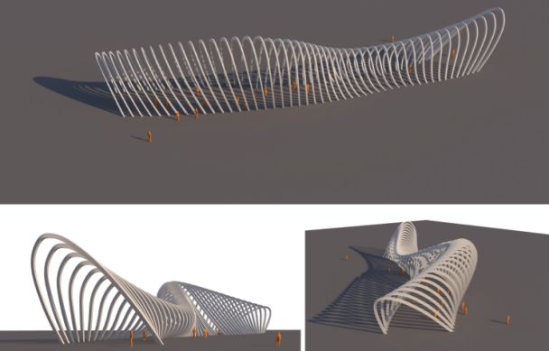 本次中標設計范圍為公園紅線范圍內(nèi)的所有鋼結(jié)構(gòu)構(gòu)筑物(包括紅線外的延伸部分)及幕墻,涉及到鋼結(jié)構(gòu)涼亭、鋼結(jié)構(gòu)雨棚、鋼結(jié)構(gòu)連廊、海堤鋼結(jié)構(gòu)構(gòu)筑物、摩天輪廣場構(gòu)筑物、游客服務中心入口構(gòu)筑物、天幕廣場構(gòu)筑物、遮雨涼亭、景觀橋(鋼結(jié)構(gòu)部分)等鋼結(jié)構(gòu)構(gòu)筑物設計和游客服務中心(含附屬樓)的幕墻設計等18個子項設計內(nèi)容,投影面積約 2萬平方米。鋼結(jié)構(gòu)構(gòu)筑物最大跨度達40米,所有項目均為曲面異型結(jié)構(gòu),造型新穎,設計難度大,因此投標采用了邀請投標的形式。