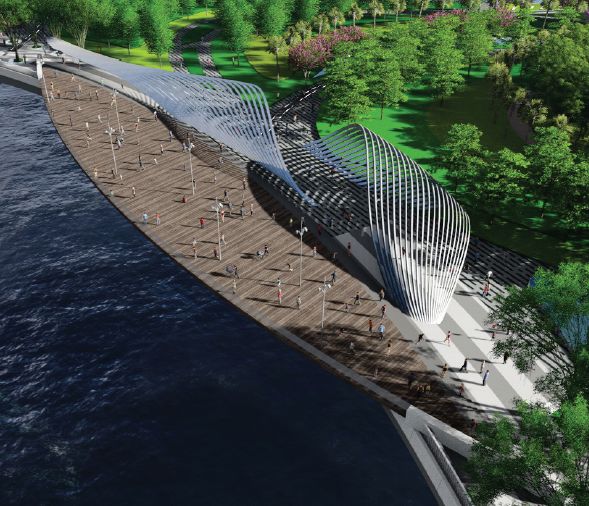 寶安海濱文化公園占地面積27.61萬平方米;包括公園(用地面積25.87公頃)及公園北側(cè)海府路等部分城市道路(面積約為1.74公頃),方案由世界著名景觀事務所SWA和美國LLA建筑設計公司完成,建成后將成為前海片區(qū)一張靚麗的名片。