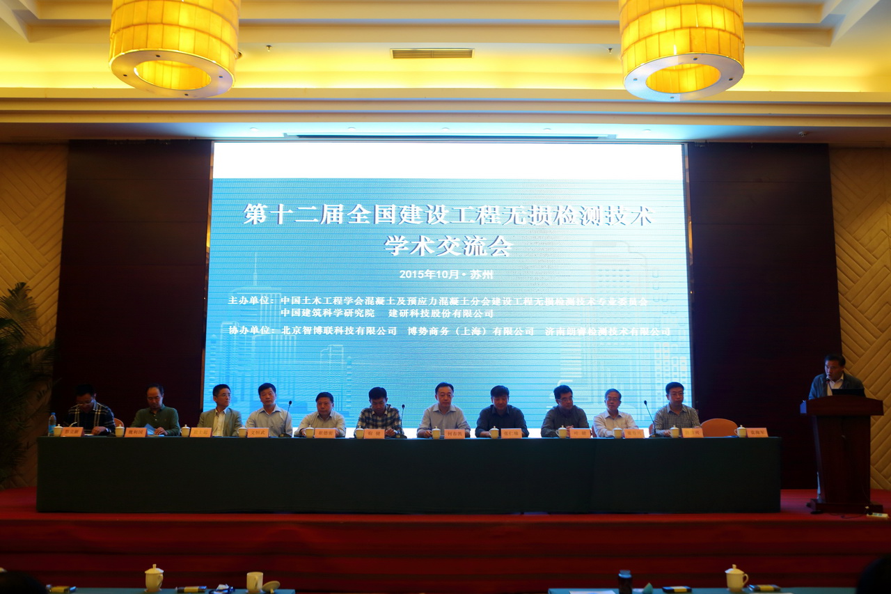 由中國土木工程學會混凝土及預應力混凝土分會建設工程無損檢測專業委員會(下稱委員會)舉辦、中國建筑科學研究院深圳分院(下稱深圳分院)協辦的“第十二屆全國建設工程無損檢測技術學術交流會”于 2015年10月21日-24日在江蘇省蘇州召開。來自全國二十多個省、直轄市、自治區,從事科研、教學、生產、施工、監理、設計、設備廠家、檢測及質量監督等行業的100余位專家與同行出席了會議,其中包括很多行業內知名的專家、學者。